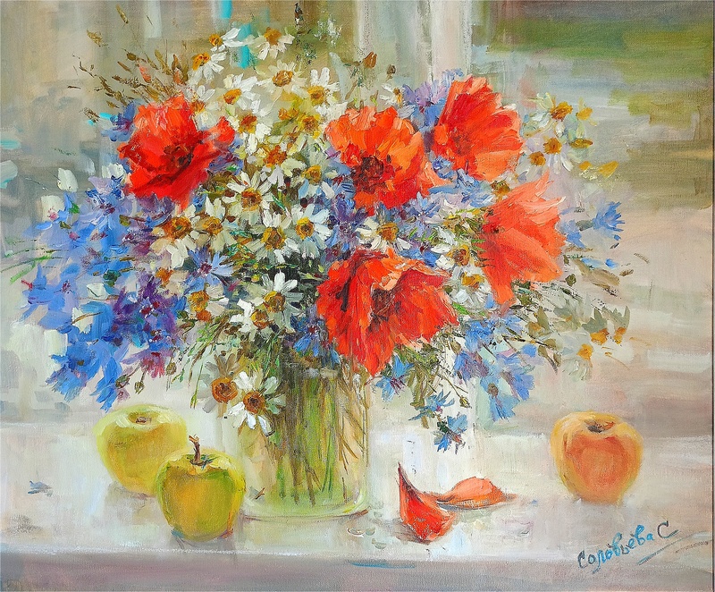 Букет с маками. 2024. Х., м., 60*50